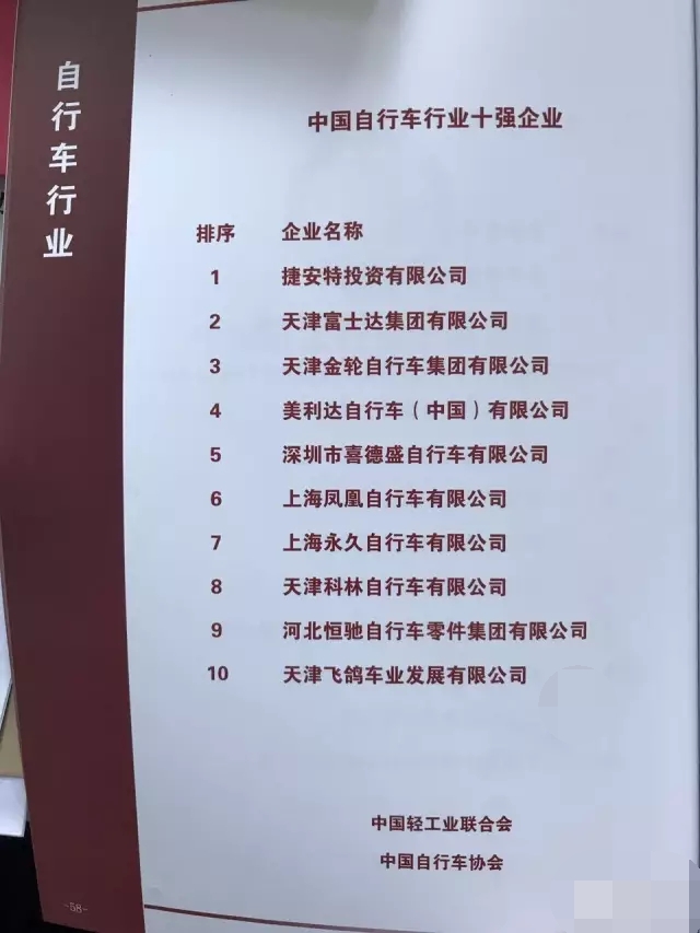 熱烈慶祝我司榮獲“中國輕工業百強企業“和””中國自行車行業十強企業”榮譽稱號